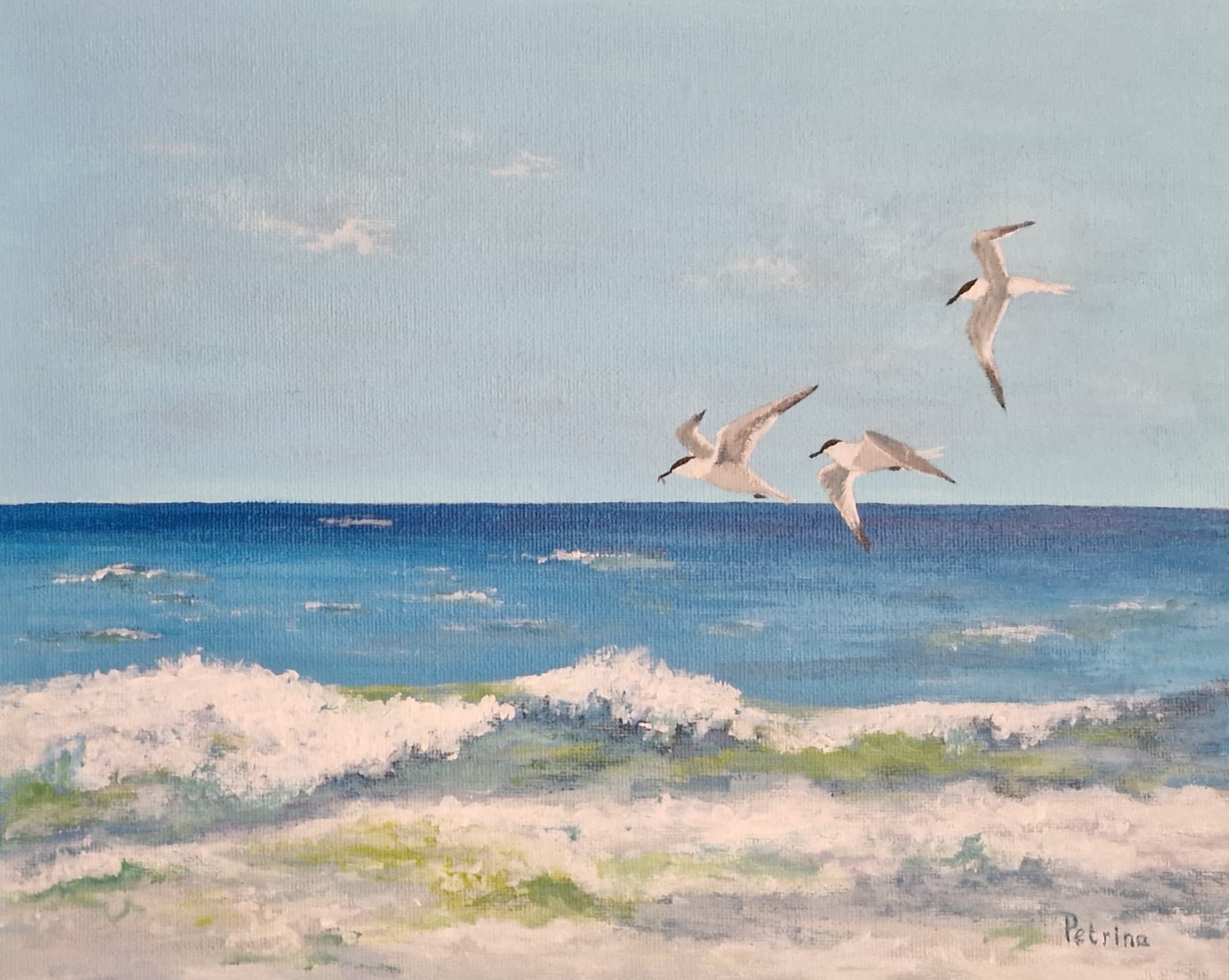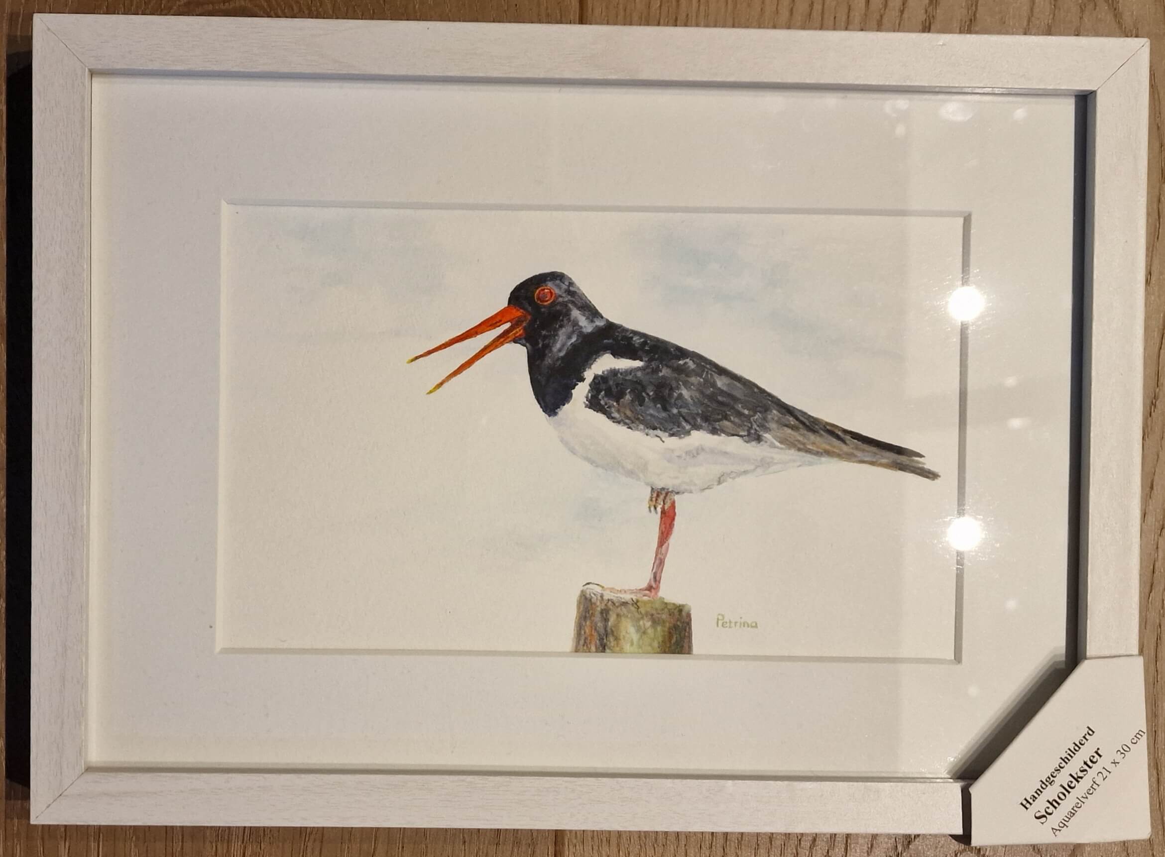 Schilderij van de Scholekster (t.w.v. € 75,00). Beschikbaar gesteld door kunstenares Petrina Groen.