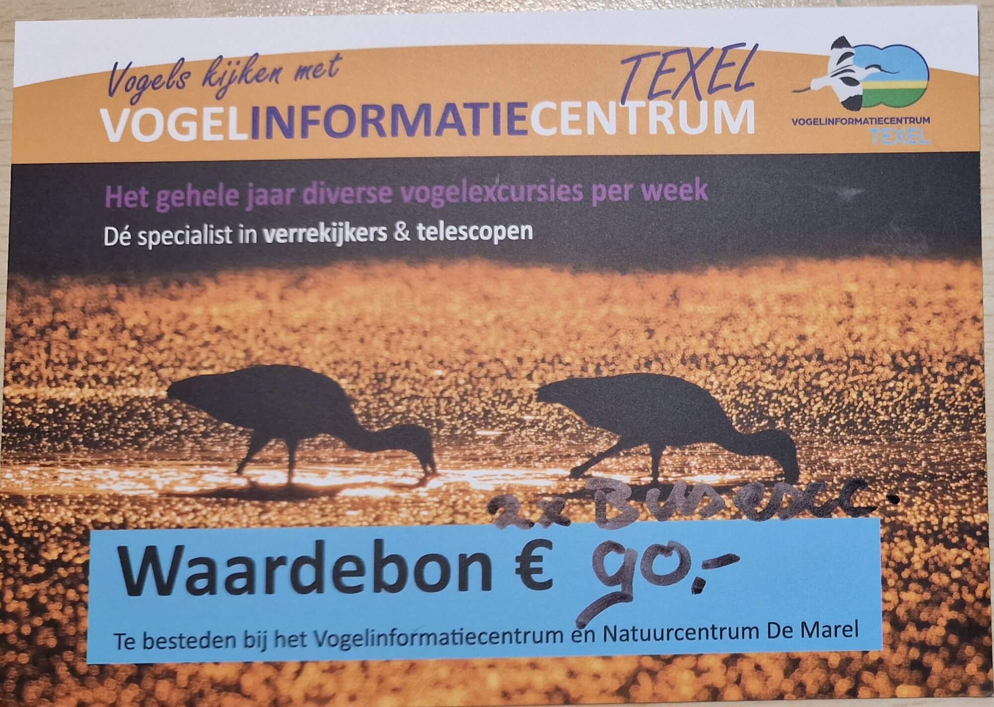 Busexcursie voor 2 personen (t.w.v. € 90,00). Beschikbaar gesteld door het Vogelinformatiecentrum.