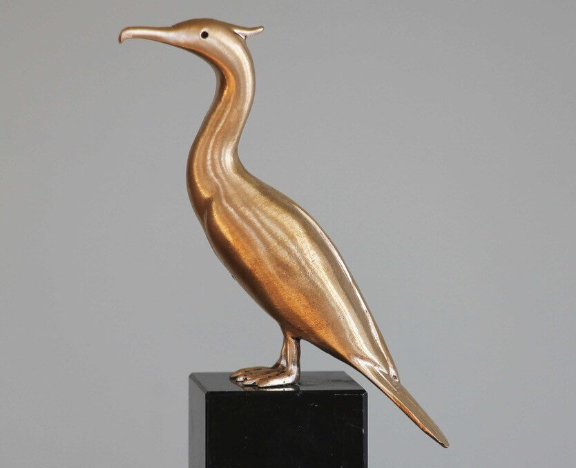 Bronzen Aalscholver (t.w.v. € 300,00). Beschikbaar gesteld door Richard van der Koppel (ook aanwezig op de Birdfair met meer beelden).
