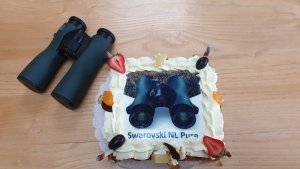 Maandag 6 juli was er reden voor een feestje in het Vogelinformatiecentrum. We mochten de eerste exemplaren van de nieuwe Swarovski NL Pure testen. We kregen de beschikking over de NL Pure 10×42 en de NL Pure 12×42 (met hoofdsteun). Omdat we al een beetje wisten welke kwaliteit deze kijkers gingen brengen, hadden we al een taart besteld.