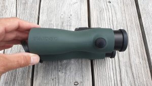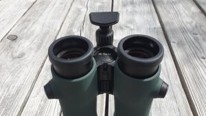 Ook ben ik telkens weer verrast door het feit hoe lekker de kijker in de hand ligt. Door de unieke vormgeving en de plek van de welving (versmalling in de kijker) en de positie van de scherpstelknop heb ik tijdens het kijken totaal niet het gevoel dat ik met een redelijk zware kijker in mijn handen sta. Natuurlijk blijft het gewicht fors met 840 gram maar om ermee in de handen te staan is absoluut niet erg.