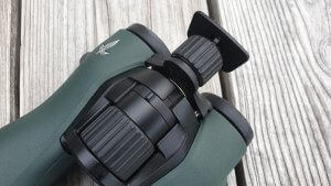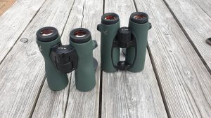 De close focus is iets minder minder dan bij de huidige EL-serie. Dit houdt in dat je minder dichtbij kunt scherpstellen. Voor de 8×42 en de 10×42 is de close focus 2,0 meter en voor de 12×42 is hij 2,6 meter. Nog steeds heel prettig, maar je kunt je tenen net niet scherp krijgen. Nu moet ik heel eerlijk zeggen, dat ik nog nooit heb meegemaakt dat er iets op m’n tenen zat, dus ik vind dit niet zo’n minpunt. Maar ik weet dat er mensen zijn die voor insecten wel eens heel dichtbij willen scherpstellen.