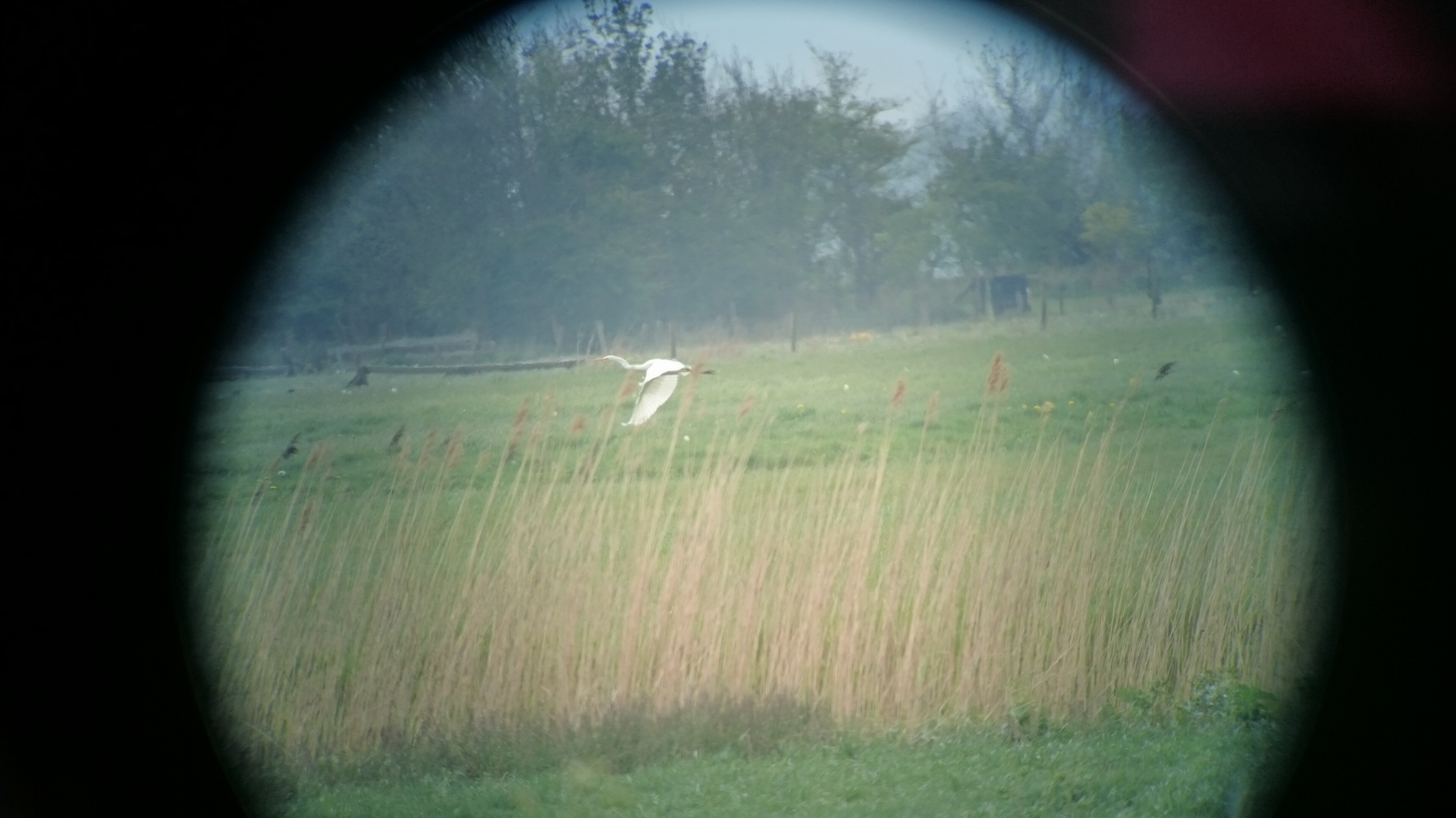 Voordat we naar het uitkijkpunt bij de Geul gaan checken we eerst de Mokbaai op Kanoet en Pontische Meeuw. De Kanoet is snel gevonden, maar de Meeuw is weg. Op het uitkijkpunt volgt een lange filmsessie met interview van een dik halfuur. Kostbare tijd tijdens een big day, maar voor het goede doel dus ons hoor je niet klagen. Het levert ons zelfs nog een zeer welkome soort op doordat Ruud (van Beusekom) een overvliegende Visarend vindt en dit met ons deelt. Bij het eerste uitkijkpunt van de Horsmeertjes zien we al snel een Knobbelzwaan en de gehoopte Dodaars en Geoorde Fuut zien we vanaf het tweede punt. De Baardman blijft stil en even lijkt het erop alsof we Blauwborst gaan dippen aangezien deze ook niet zingt. Gelukkig heeft Blauwborst een zeer kenmerkende staart en als we er 1 zien opvliegen uit een struik is deze dan ook makkelijk binnen. Ook vliegt er tijdens het wachten op de Baardman eindelijk onze eerste Blauwe Reiger over.