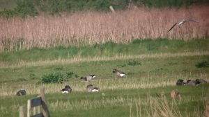 We vervolgens onze weg naar het noorden en ik trap mij helemaal kapot tegen de wind in. Het moet echter wel, want er is niet veel licht meer en we moeten Zwarte Rotgans nog. Als we bij Zeeburg komen blijken de ganzen wel erg ver te staan en vliegen er ook al groepjes de Waddenzee op om te gaan slapen. We doen nog een uiterste poging, maar het mag niet meer baten.
