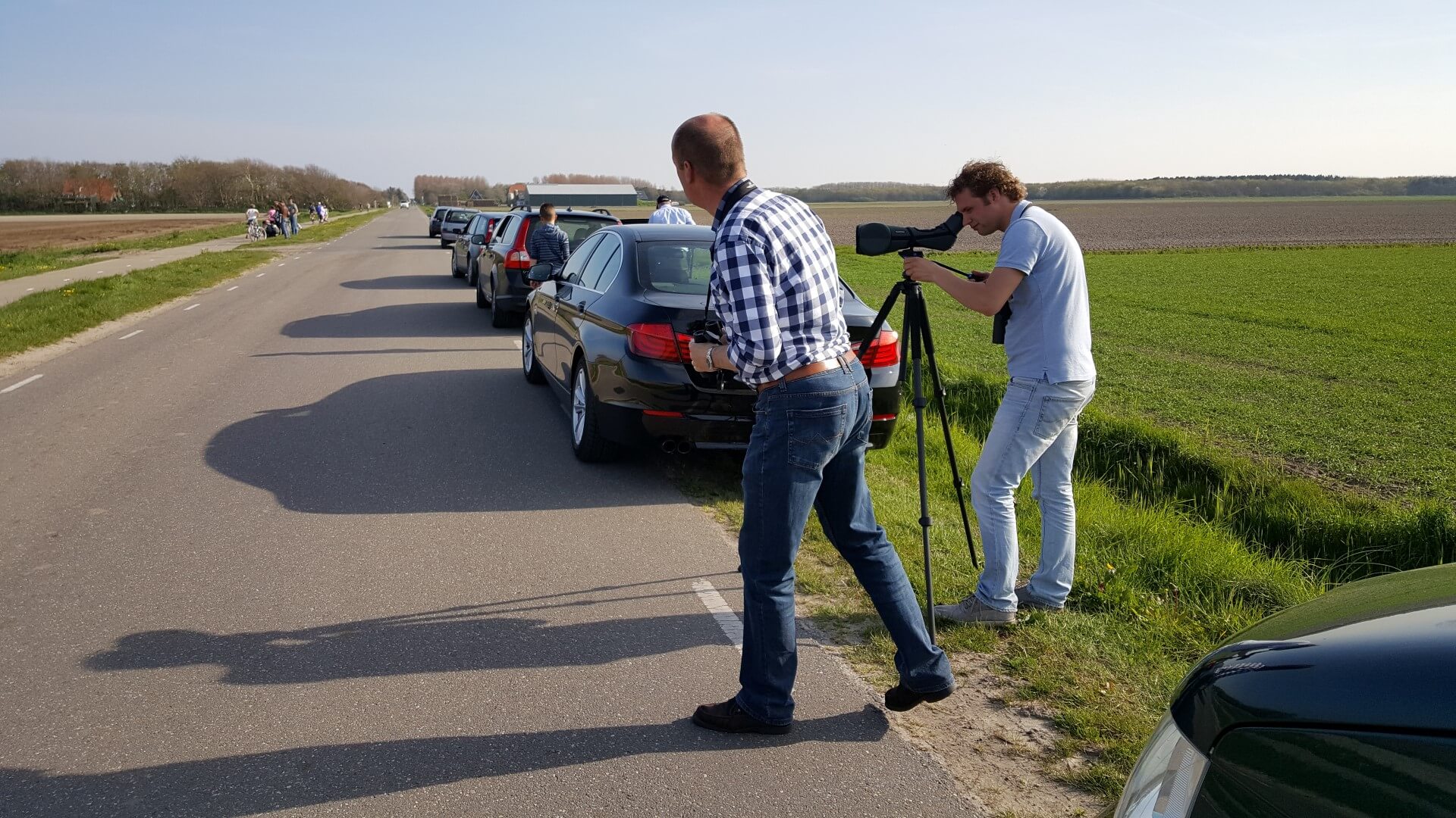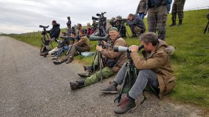 Vele vogelaars op de noordpunt, genieten van de vele roofvogels die overvlogen (die dag vlogen meer dan 20 Visarenden, 3 Zwarte Wouwen, 3 Roodpootvalken en meerdere Bijenters over).
