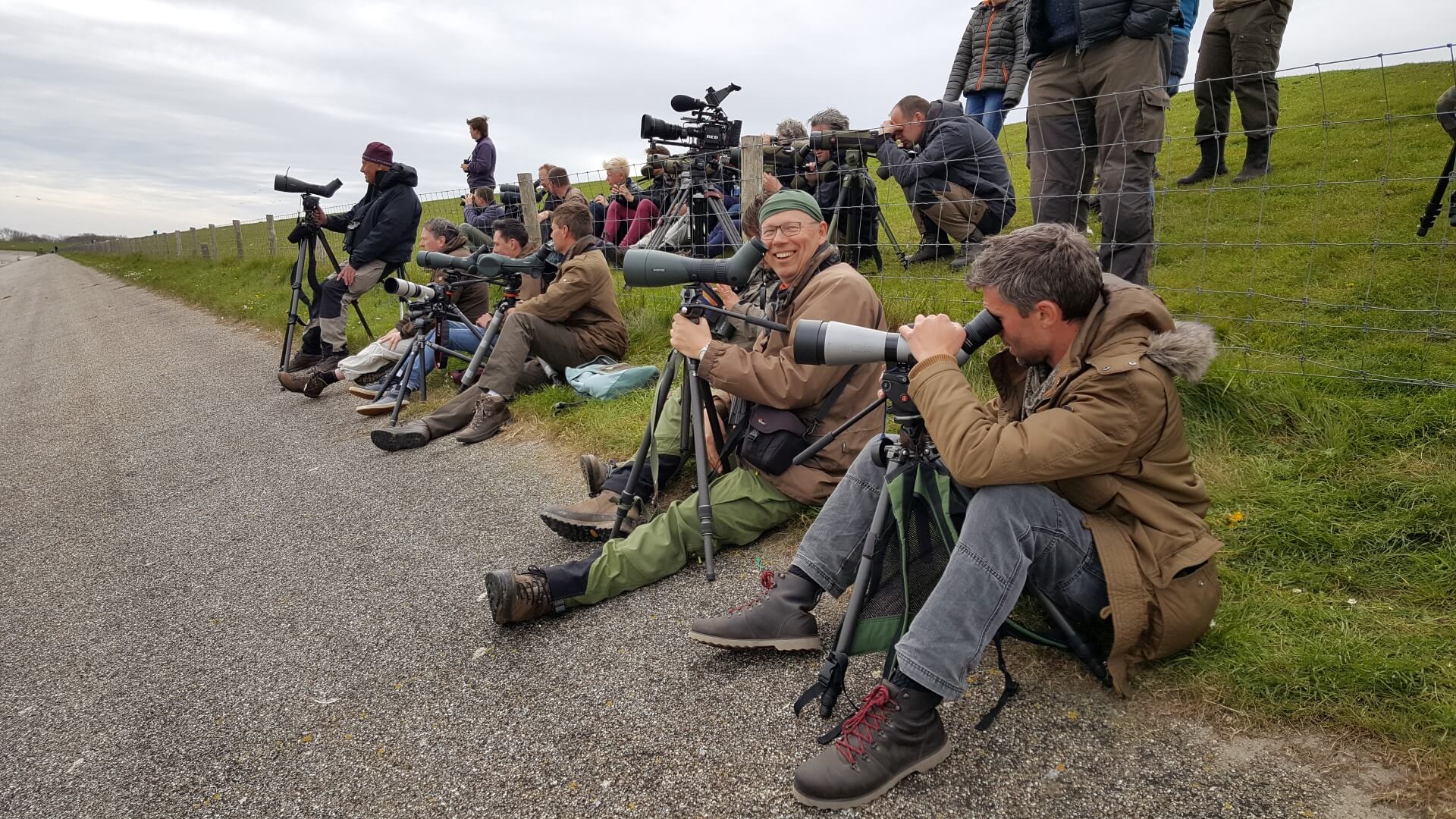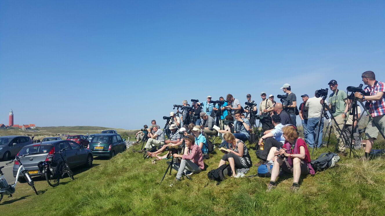 De aanloop naar het Wadden Vogelfestival was al heel succesvol. Hier vogelaars op de dijk bij de Volharding waar een Dougall Stern gezien werd.