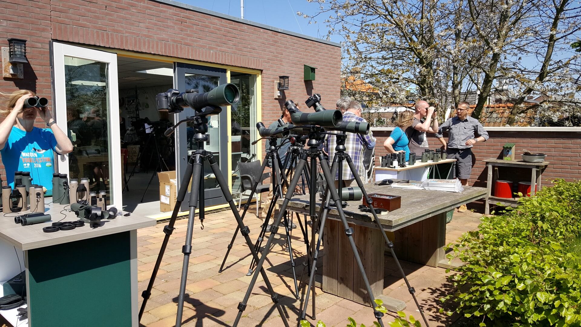 Verrekijkers testen bij het Vogelinformatiecentrum. Hier kunt u altijd terecht om een nieuwe telescoop of verrekijker te testen.